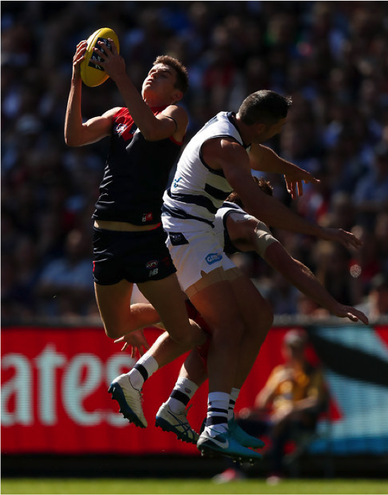 Although the Dees were missing Jack Viney & Tom McDonald through injury our lads were fit & ready to rumble. Within the first 2 minutes Jayden Hunt lobbed the ball from outside the 50 where a superb mark by new recruit Bayley Fritsch sealed the opening goal. Unfortunately 90 seconds later new Geelong signing Esava Ratugolea did the same at the other end; Jake Lever was going to have a busy afternoon keeping the Fijian at bay.